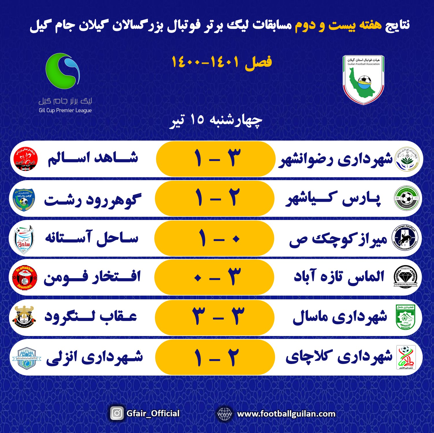 تیم های گوهر رود رشت و شاهد شفارود اسالم به لیگ یک فوتبال گیلان سقوط کردند.