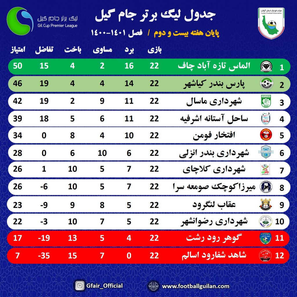 بدین ترتیب تیم فوتبال پارس بندر کیاشهر با ۴۶ امتیاز نایب قهرمان و نماینده فوتبال گیلان در جام حذفی کشور خواهد بود.