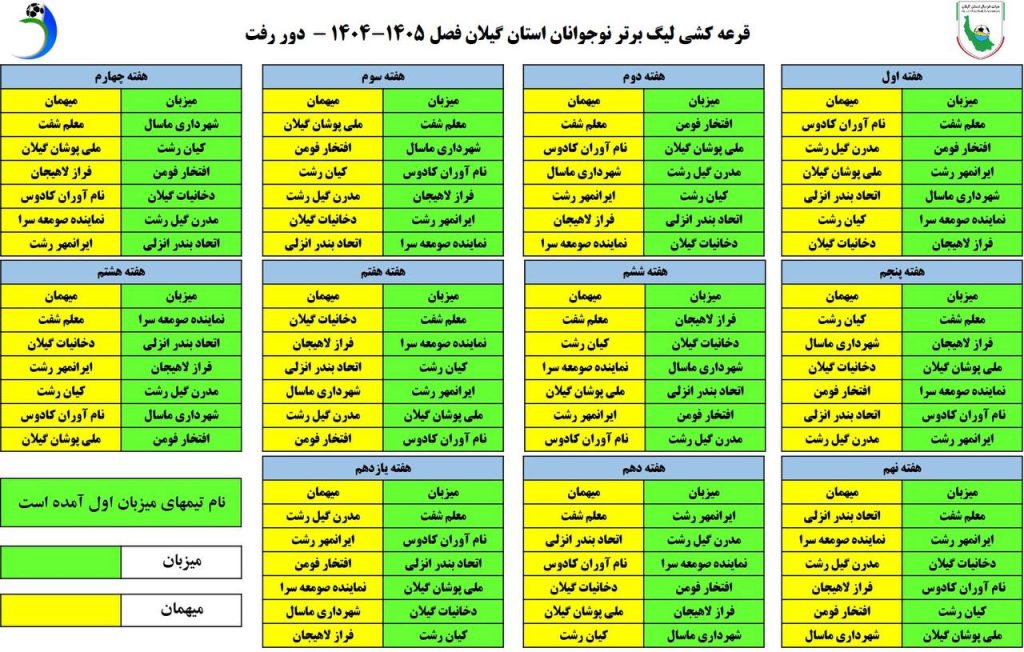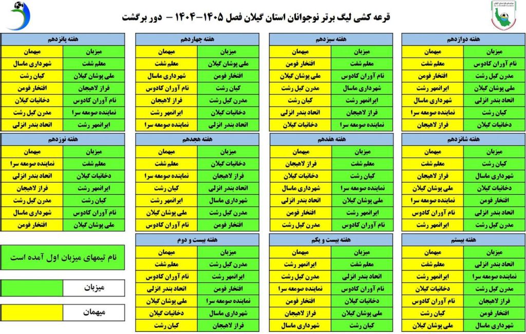 مراسم قرعهکشی لیگ برتر فوتبال نوجوانان گیلان فصل ۱۴۰۵-۱۴۰۴ با حضور نمایندگان ۱۲ باشگاه شرکت کننده و مسوولین هیات فوتبال گیلان برگزارشد.